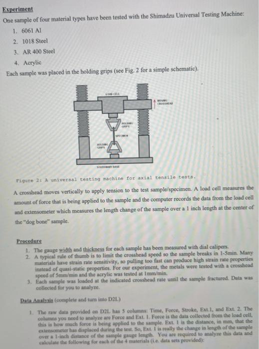 Solved Experiment 1 Tensile Test 1 0 Objectives 1 1 To Chegg Com